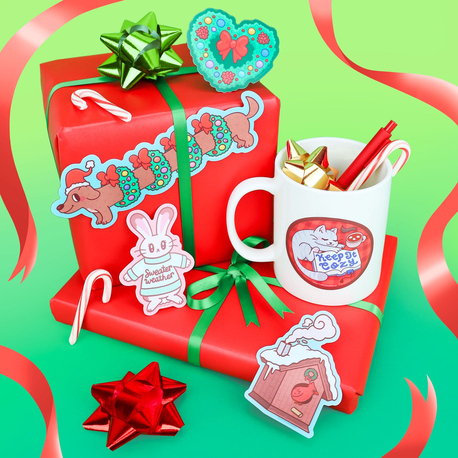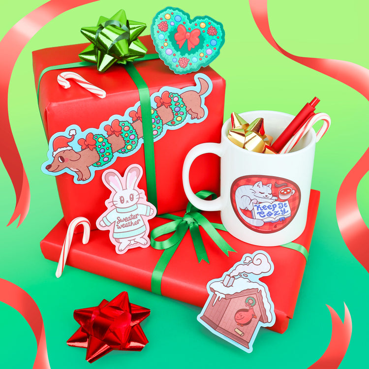 Give your loved ones the gifts of laughter and whimsy with our collection of winter stickers, holiday cards, bookmarks, and more! Our products make perfect stocking stuffers or decorations for your own holiday cheer!