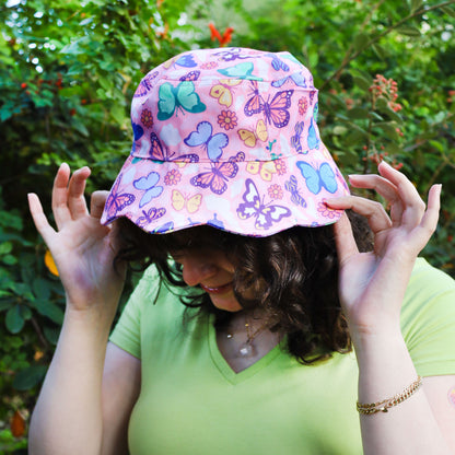 Whimsical Adult Reversible Butterfly and Moth Bucket Hat Spring Fashion