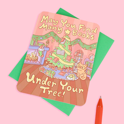 May You Find Many Books Under Your Tree Christmas Holiday Card