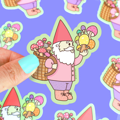Gnome Mushroom Gatherer Vinyl Sticker