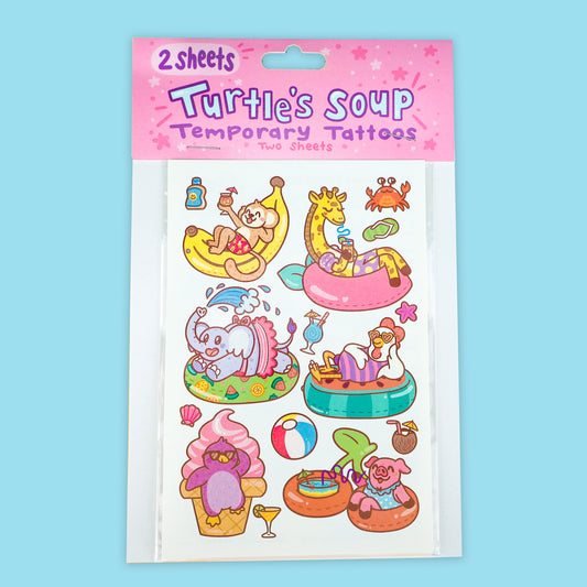 Pool Party Temporary Tattoos Set of 2 Sheets