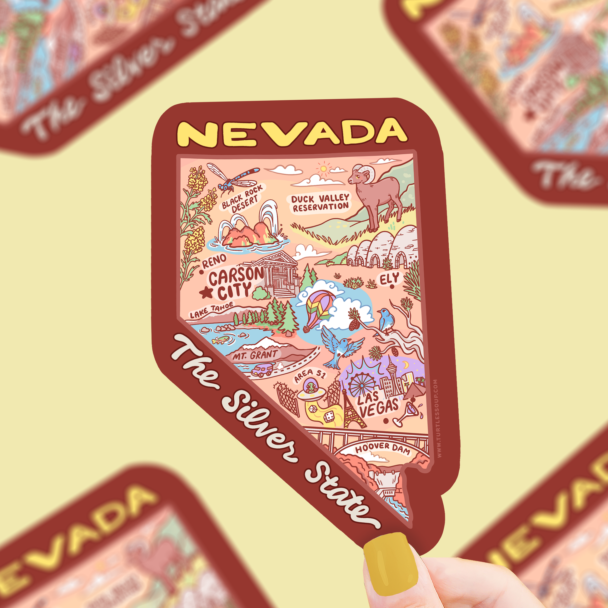Nevada is the Silver State! It's home to Las Vegas, area 51, and Lake Tahoe. Try not to get abducted by aliens when exploring the desert landscape!