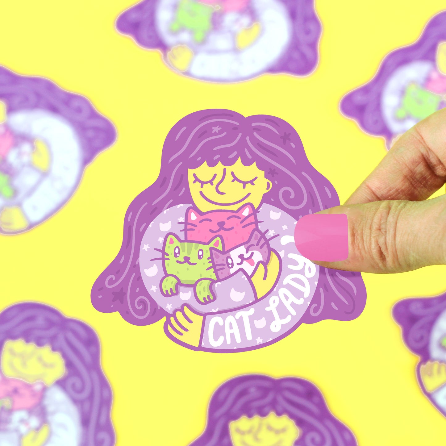 Cat Lady, Adorable Kitty Cat Mom Sticker, For Water Bottle, Laptop, Illustrated Cat Sticker, Vinyl Sticker, Hug Your Cat