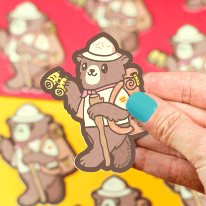 Backpacking Bear has been a bear-cub scouts leader for several decades, so you can say he knows a thing or two about nature. There’s no problem on a hike that he can’t solve. Need shelter? He already built that. Need warmth? Backpacking Bear is already roasting weenies on the fire he started. Need snacks? The whole reason he brought a backpack was to load it up with snacks! Stick this guy on your favorite hiking water bottle and you’ll be ready to go!