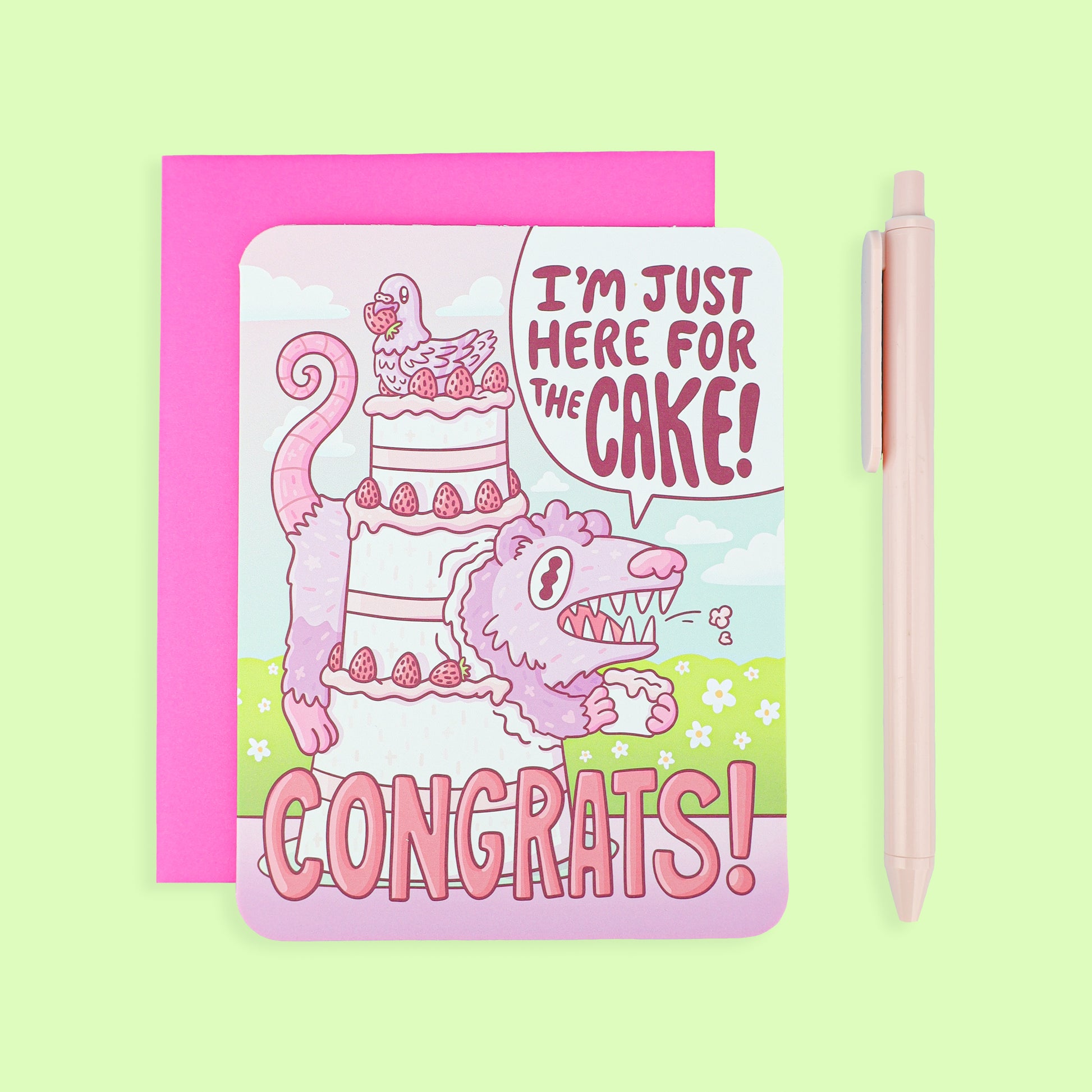 Congrats Cake Opossum Wedding Card