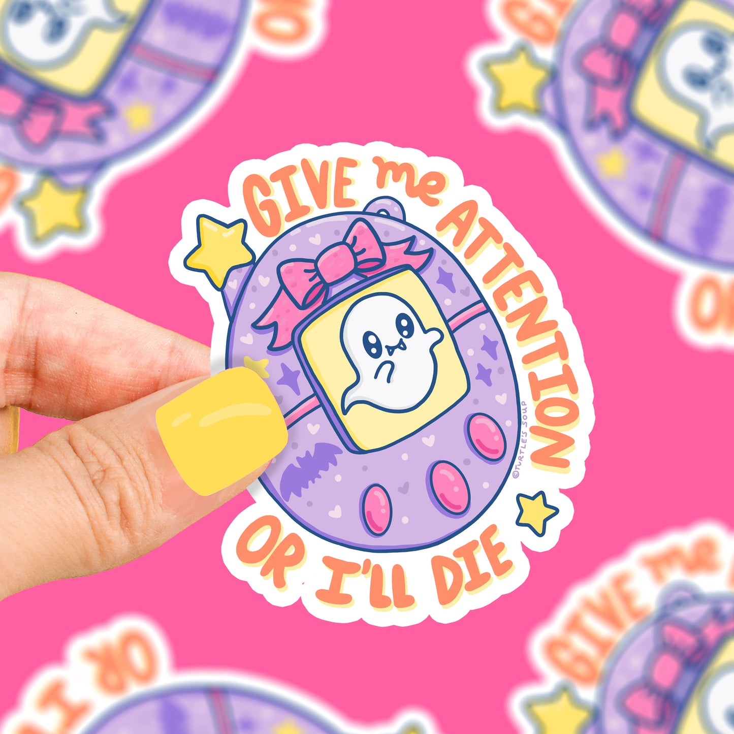 give-me-attention-or-ill-die-funny-small-mini-gaming-egg-system-small-handheld-egg-game-sticker-decal-by-turtles-soup