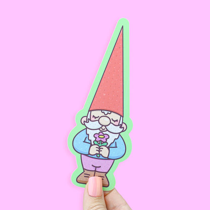 This garden gnome has set up shop in your favorite book, but don’t worry he’s only there to sniff flowers!
