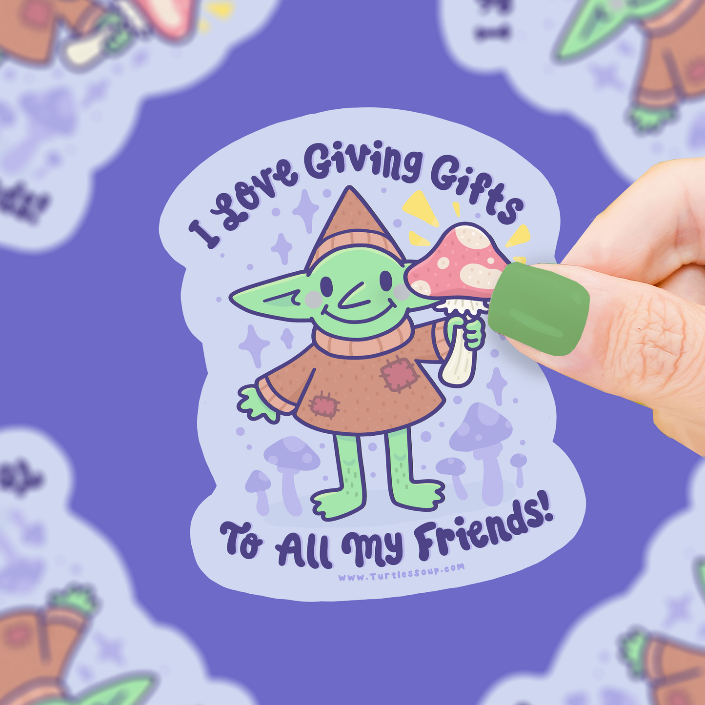 I Love Giving Gifts To My Friends Goblin Silly Vinyl Sticker