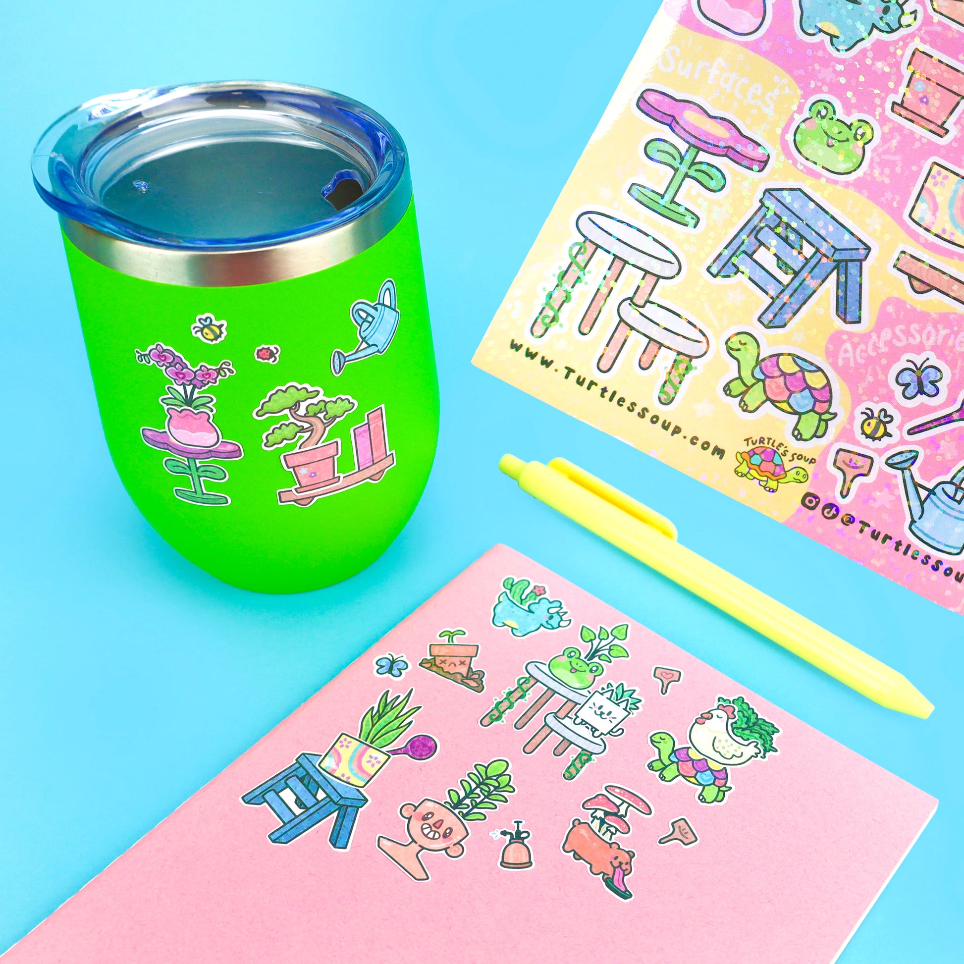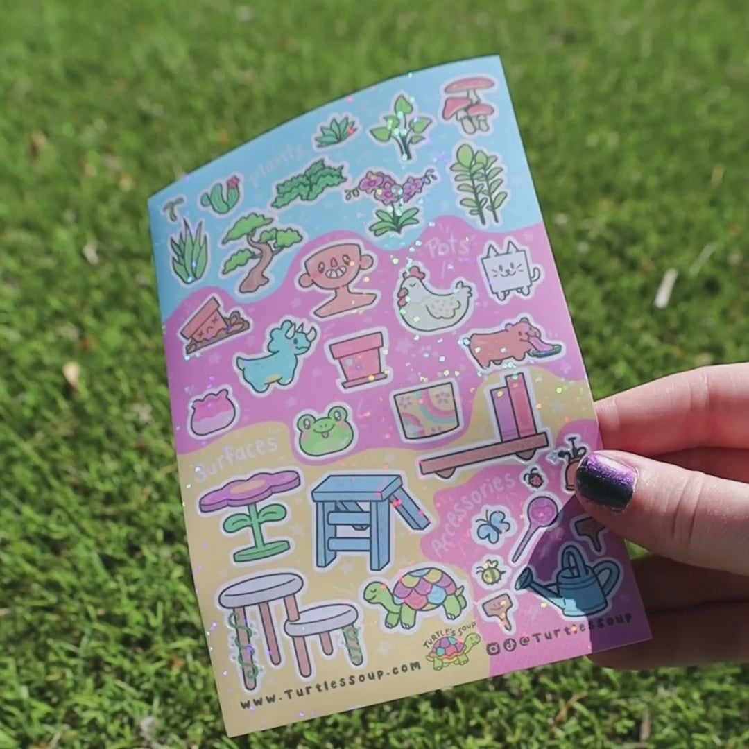 Build your very own potted plant with this interactive plant sticker sheet! Start with a cute pot base, then pick a happy plant and place it in (behind) the pot! Next, put that potted plant on a unique surface and add an accessory! With this sticker sheet, the combinations are endless! What unique potted plant creation will you make?
