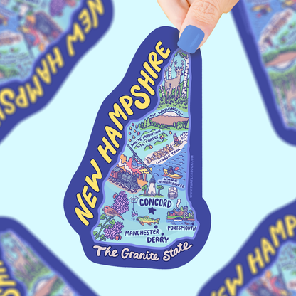 New Hampshire is the Granite State! It's home to lush woods, White Mountain National Forest, and the Muse of Comedy Statue. Check out some winter sports and beautiful natural landscapes!