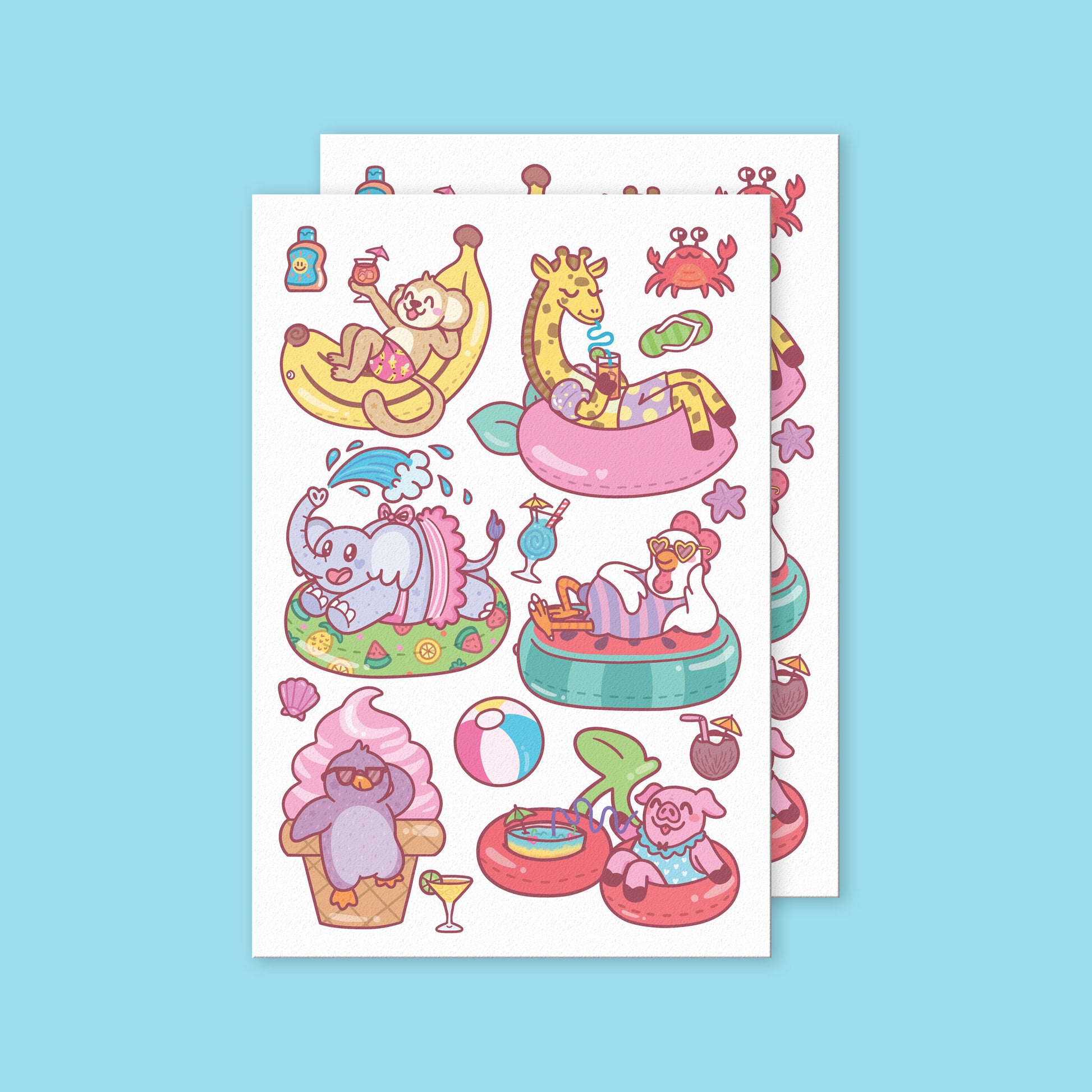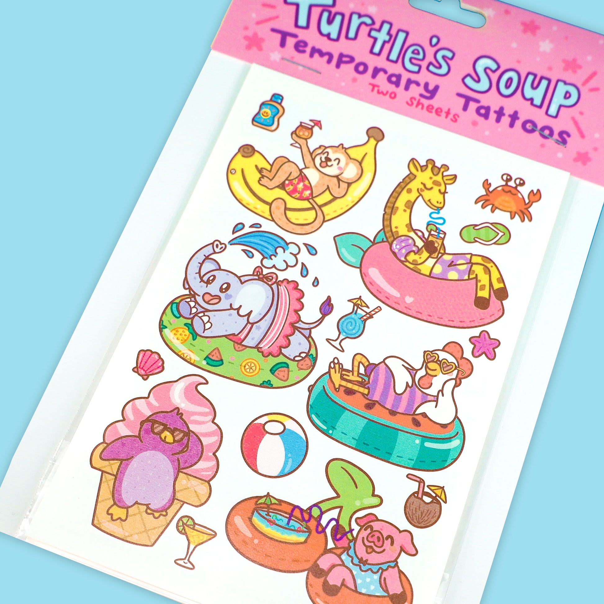 Pool Party Temporary Tattoos Set of 2 Sheets