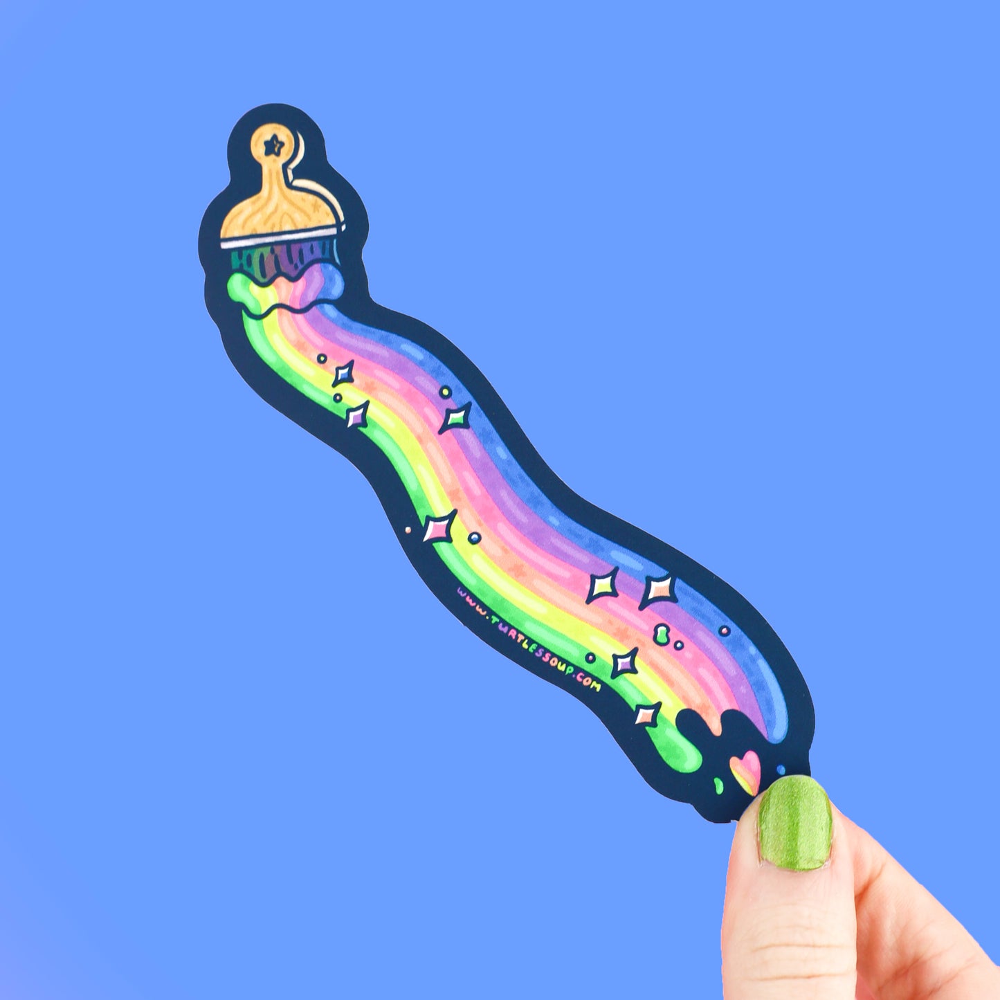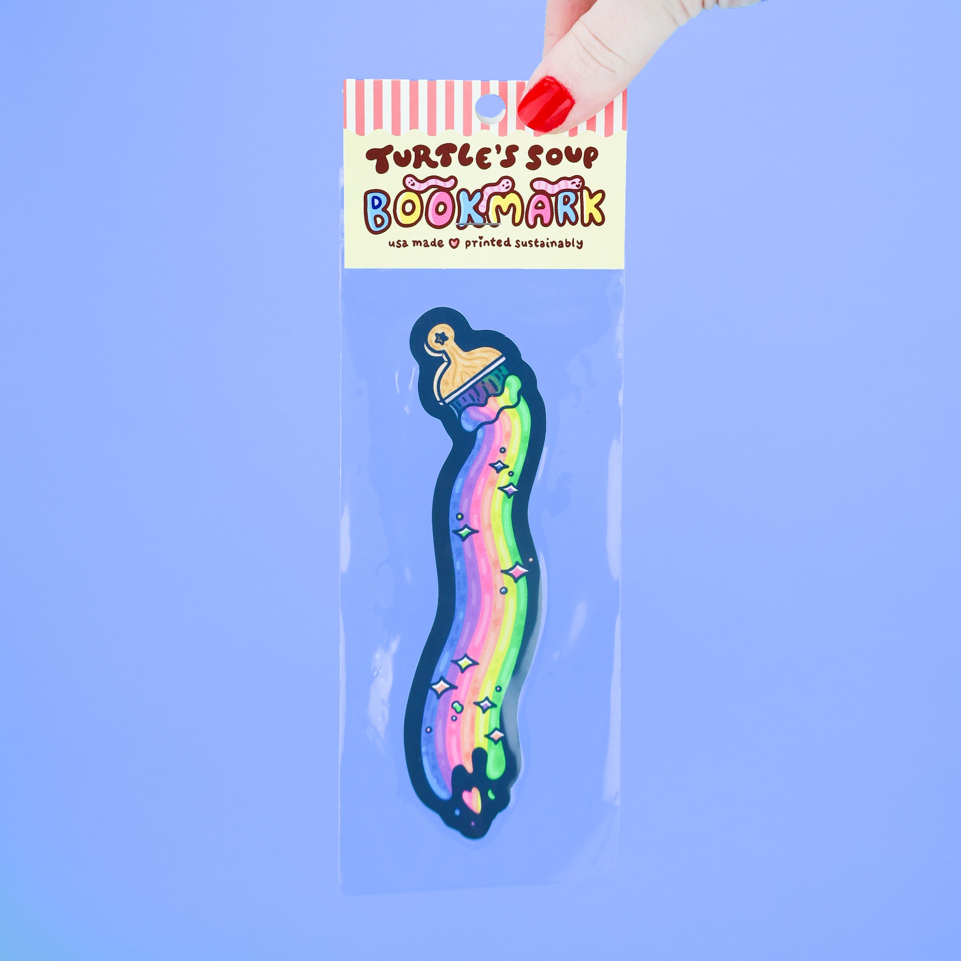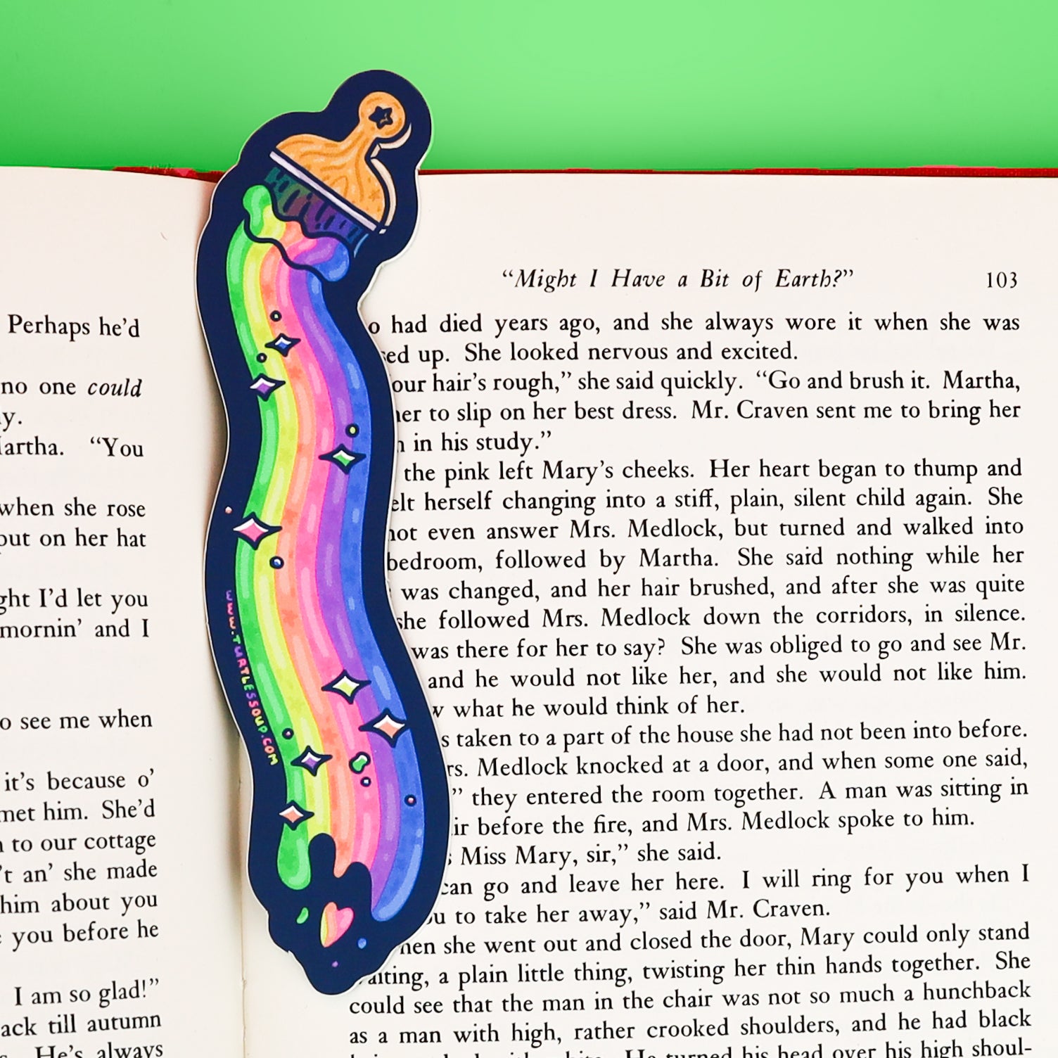 Usually, putting a wet paintbrush in a book is a terrible idea. But don't worry! Our magical rainbow paintbrush won't spill a single drop of paint on any chapter!