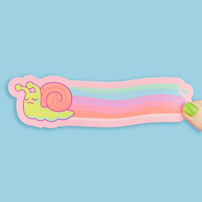 This snail leaves a rainbow snail trail behind her wherever she goes. Spread the rainbow! Life can always use more color!