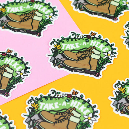 take-a-hike-turtles-soup-hiking-outdoors-vinyl-sticker-decal-for-backpacking-water-bottle-turtles-soup-boots