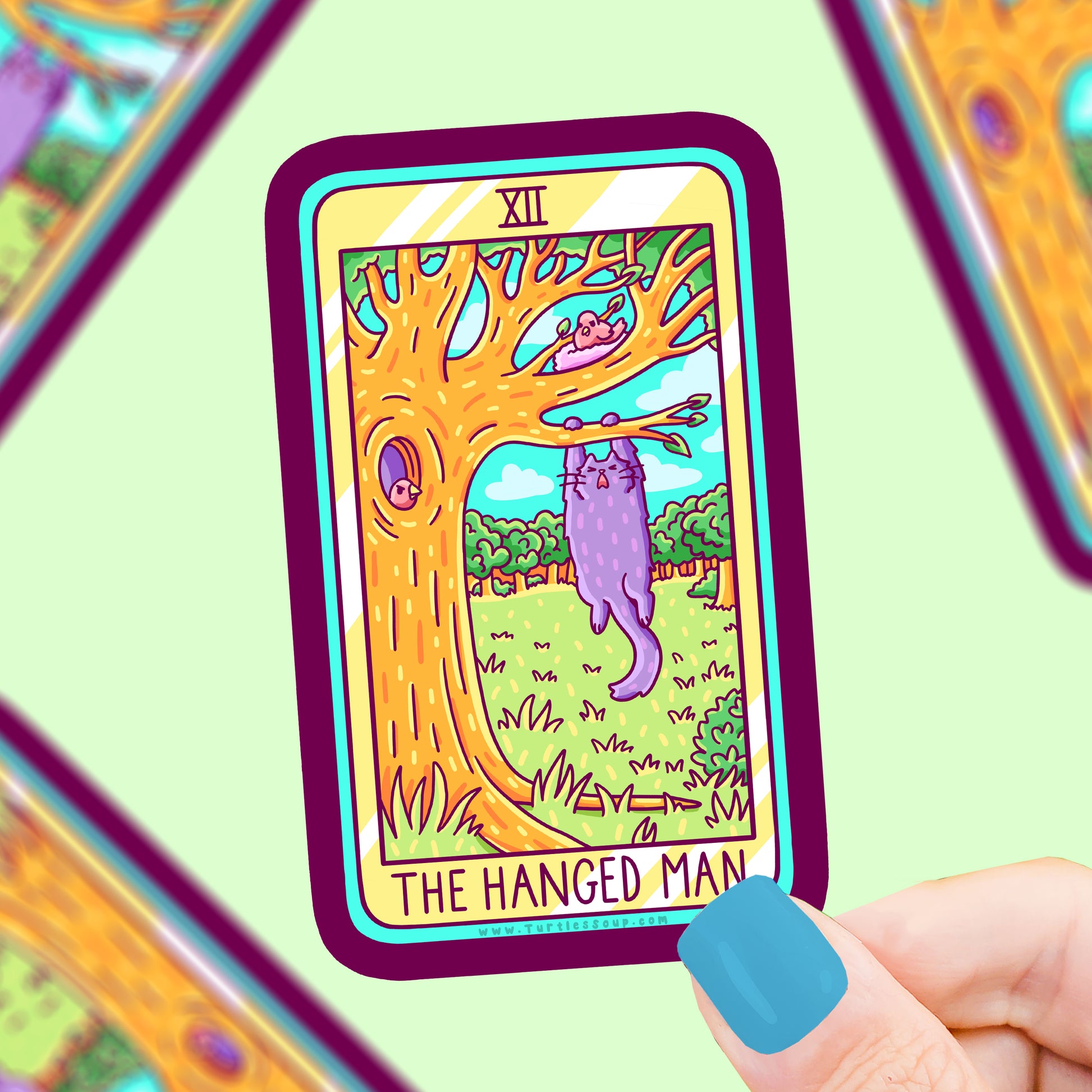 The Hanged Man Kitty Tarot Card Vinyl Sticker