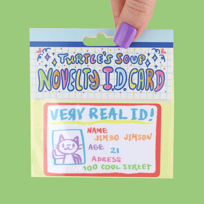 Next time you're asked to show your ID, pull out a silly surprise! Our durable, hard plastic Turtle's Soup Novelty ID cards are the perfect size to fit in your wallet. They're double-sided with unique art and quirky text on both front and back. Perfect for pranking your friends or the local bartender! πŸ’³